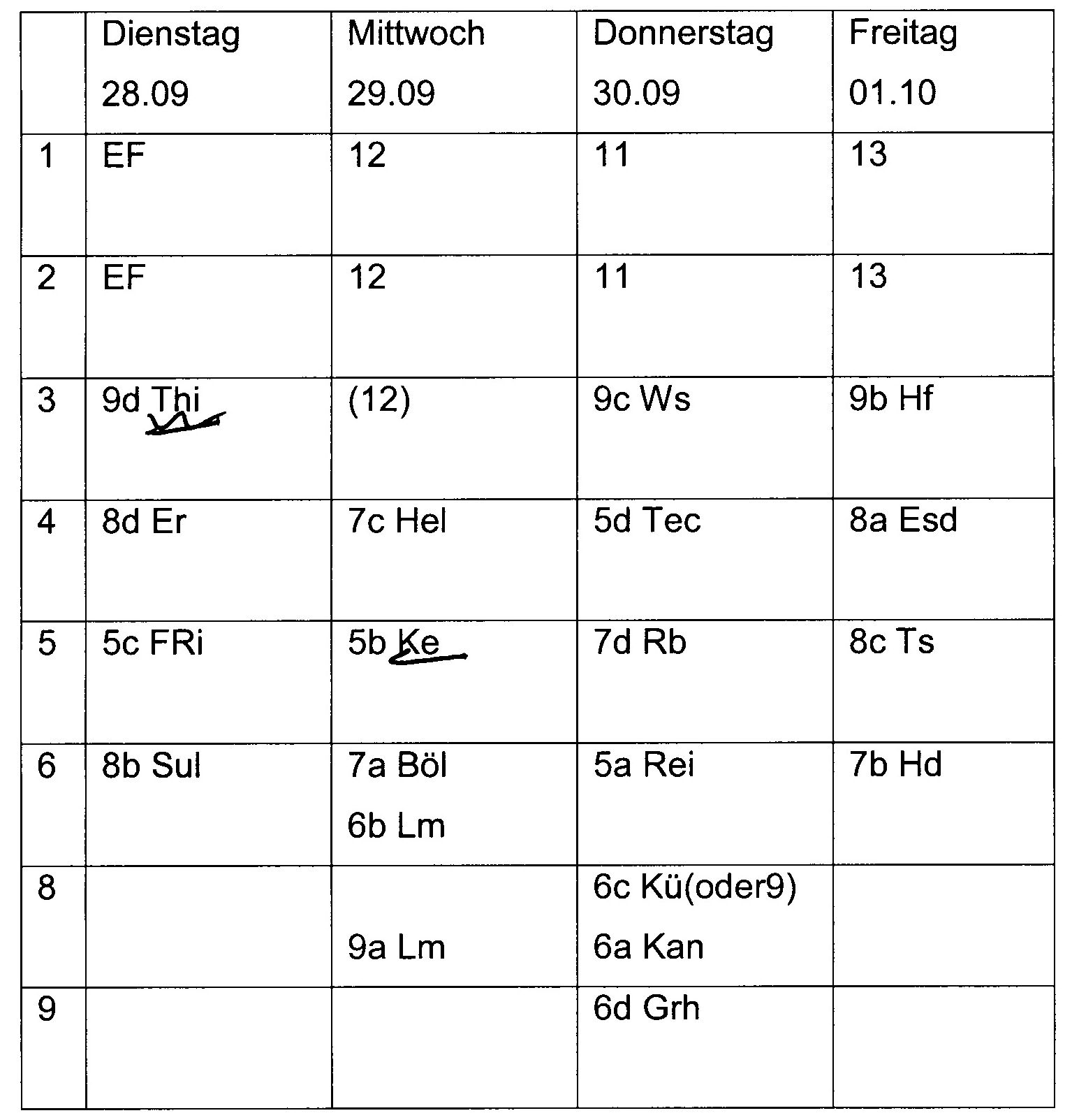 | September 2010 | 15 Mi | 5./6.Std., Aula, Jahrgangsstufenversammlung 13 (Sf) 6./7.Std., 241/2, |