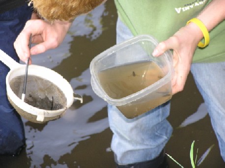 In Arbeitsgruppen wurden mit Sieben Tiere gesammelt. |