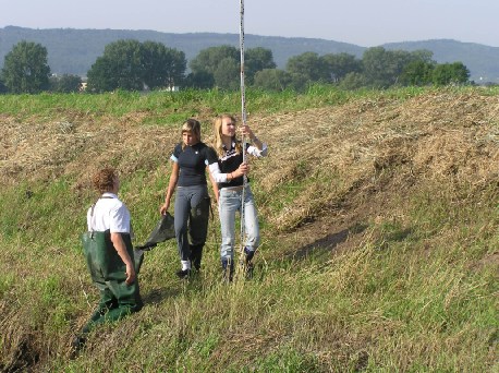 Die Ufer und Sohle der Bastau wurde von einer Arbeitsgruppe vermessen.