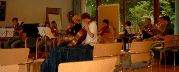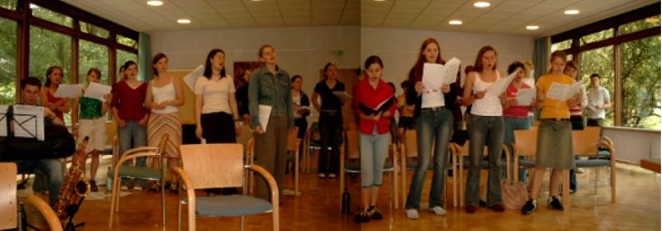 Nach Ankunft und Bezug der Zweibettzimmer ging es daran, eine erste Gesamtprobe der Gospelmesse Missa Parvulorum Dei für Solo, Chor und Orchester von Ralf Grössler zu absolvieren. Schnell wurde uns klar, dass uns noch eine Menge Arbeit erwartet.